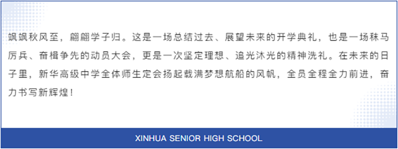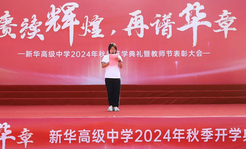 萬(wàn)物積勢(shì)迎秋風(fēng),策馬揚(yáng)鞭續(xù)輝煌。2024年9月10日上午,新華高級(jí)中學(xué)在校運(yùn)動(dòng)場(chǎng)隆重舉行2024年秋季開學(xué)典禮暨教師節(jié)表彰活動(dòng)。新華高級(jí)中學(xué)校長(zhǎng)徐邦民,副校長(zhǎng)陳俊、王昌武、蔡賢滿、吳東、方明生等領(lǐng)導(dǎo)及全體師生齊聚一堂,共同見證了這一激動(dòng)人心的時(shí)刻。新學(xué)期,新面貌,我們重新啟程!