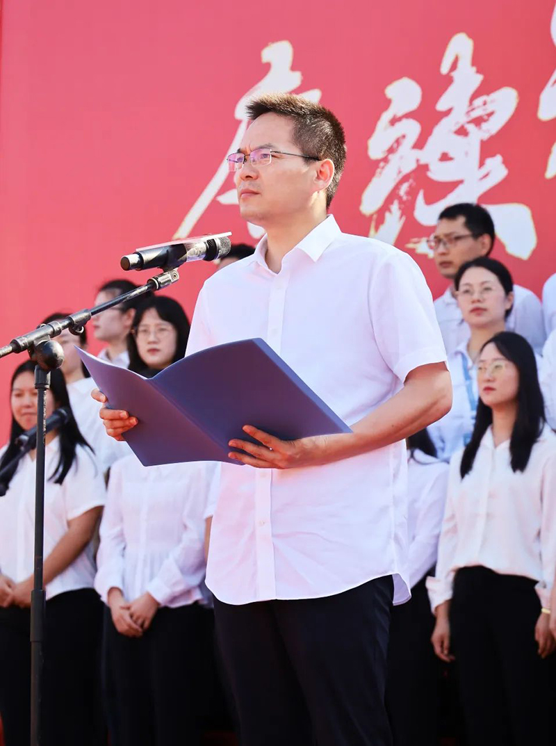 副校長(zhǎng)陳俊領(lǐng)誓,全體高三教師宣誓