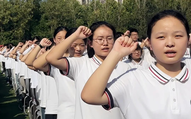 高三(4)班程徐鑫同學(xué)領(lǐng)誓,全體高三學(xué)生宣誓