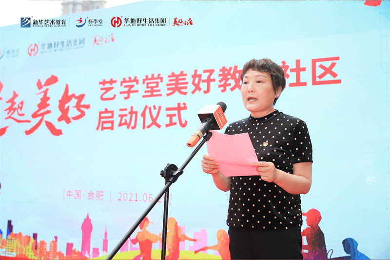 特邀嘉賓洪崗社區(qū)黨委委員婦聯(lián)主席黃求霞、洪崗社居委委員團支部書記劉泉、洪崗社居委委員組織員洪家躍、華地好生活集團總經(jīng)理羅星星、藝學堂教育科技集團常務副總經(jīng)理馬飛、藝學堂總經(jīng)理助理管如鎖、藝學堂合肥城市公司負責人何峰、華地好生活集團品牌總監(jiān)楊陽、藝學堂市場運營中心總監(jiān)路平等相關領導,與受邀參與文藝演出的小學員們以及合肥廣播電視臺、鳳凰網(wǎng)、安徽論壇、合肥論壇、萬家熱線等十余家新聞媒體出席啟動儀式。儀式由安徽廣播電視臺主持人葉鵬主持。