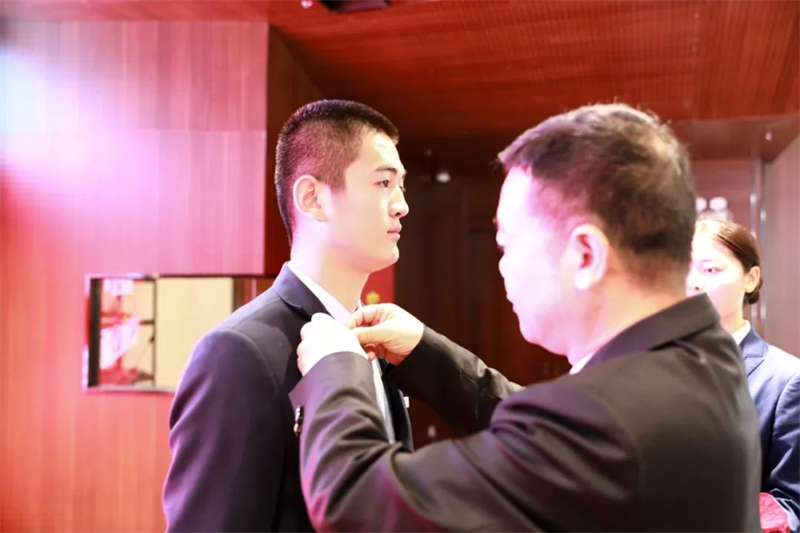 華地好生活集團(tuán)董事長(zhǎng)管玉社為優(yōu)秀學(xué)員佩戴郁金香徽章