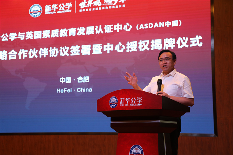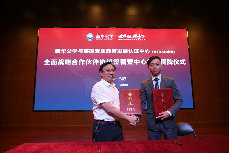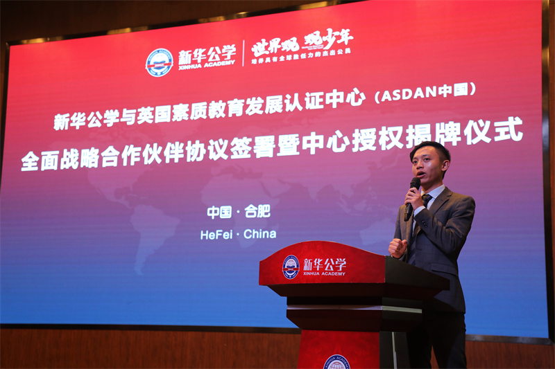 熱烈祝賀新華公學(xué)正式與英國素質(zhì)教育認(rèn)證發(fā)展中心(中國區(qū))簽署戰(zhàn)略合作并榮獲授權(quán)。9月16日,ASDAN中國副總裁兼中西區(qū)總監(jiān)譚鳳先生蒞臨我校,出席此次簽約授牌儀式。